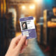 Dark Blue Background Logo Template Employee Staff ID Badge