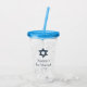 A modern dark blue Star of David Bar Mitzvah acrylic tumbler. Makes a great party favour gift!