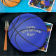Dark Blue Basketball Happy Birthday Name Paper Plate
