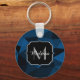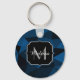 Dark blue black geometric mesh pattern Monogram Key Ring