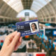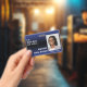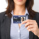 Dark Blue & Black Ombre Smiling Hello Behind Mask ID Badge