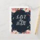 Dark Blue & Blush Pink Pastel Floral Save the Date Announcement Postcard