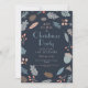 Dark Blue Botanical Christmas Party Leaves Acorns Invitation