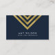 Dark Blue Chic Faux Gold Geometric Design Business Card