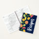 A personalised recipe book with citrus fruit pattern featuring colourful oranges, lemons, tangerines and grapefruit.