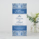 Dark blue damask pattern on a silver gradient background Wedding Menu Rack card.