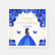 This elegant and glamourous birthday party napkin features a beautiful princess with dark skin in a dark blue ball gown. The text combines handwritten script and modern sans serif fonts for a classy and sophisticated look. The floral arrangements, butterfly and gold confetti create the perfect blend of rustic and chic.