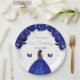 This elegant and glamourous birthday party plate features a beautiful princess with dark skin in a dark blue ball gown. The text combines handwritten script and modern sans serif fonts for a classy and sophisticated look. The floral arrangements, butterfly and silver confetti create the perfect blend of rustic and chic.