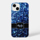 Dark Blue deep shiny faux glitter sparkle Monogram iPhone Case