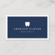 Dental business cards featuring a white tooth logo and your name and title on a dark blue background with a white border on the front. White back with template field for your contact information