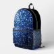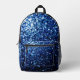 Dark blue faux glitter sparkles Printed Backpack. Cool fashion accessory bag for her. Beautiful girly glamourous blue shiny glitters sparkles design. Create a unique and personalised girly backpack. No messy glitter to the touch! We use photo of sparkles, not real glitter!