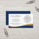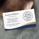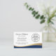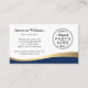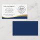 Modern, dark blue and golden (printed colour gradient, not real foil) curved border business cards with your custom logo, name, title and contact information. You can change background and font colours, move and resize elements with the design tool.