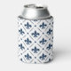 Dark blue Fleur De Lis pattern on white background Can Cooler
