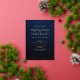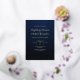 Elegant invitation with a dark blue background and premium gold lines and dust design element. This classy minimalist wedding invitation template is ideal for inviting your guests. Simply personalise your event information into this template to create a one-of-a-kind invitation.