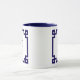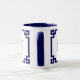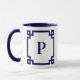 Decorative white and dark blue Greek key style square border with a modern serif monogram.