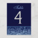 Dark Blue Grunge Damask Wedding Table Number Card