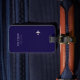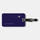 dark blue international travel tag with name