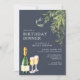 Dark Blue Navy | Modern Champagne Birthday Dinner Invitation