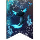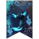 This dark blue neon aquatic axolotl birthday bunting sets the stage for an extraordinary and enchanting under-the-sea celebration. The background is a deep and mysterious underwater world, bathed in dark, velvety hues, creating an aura of aquatic mystique. At the heart of this mesmerising aquatic realm, a neon dark blue axolotl takes centre stage, its vibrant and whimsical presence contrasting brilliantly against the deep-sea backdrop. With its glistening, otherworldly allure, the axolotl adds a touch of magic and intrigue to the invitation, promising an underwater adventure and an unforgettable birthday celebration beneath the waves.