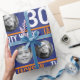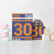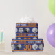 Navy blue and contrasting orange birthday photo template wrapping paper. Graphic wrapping paper customise with your own name and three photos of your birthday girl or boy. Other matching items are available. Unique design by Sarah Trett for www.mylittleeden.com