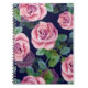 Dark Blue, Pink Roses Watercolor. Notebook