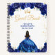 This elegant and glamourous Quinceañera guest book features a beautiful princess with dark hair in a dark blue ball gown. The text combines handwritten script and modern sans serif fonts for a classy and sophisticated look. The floral arrangements and gold confetti create the perfect blend of rustic and chic.