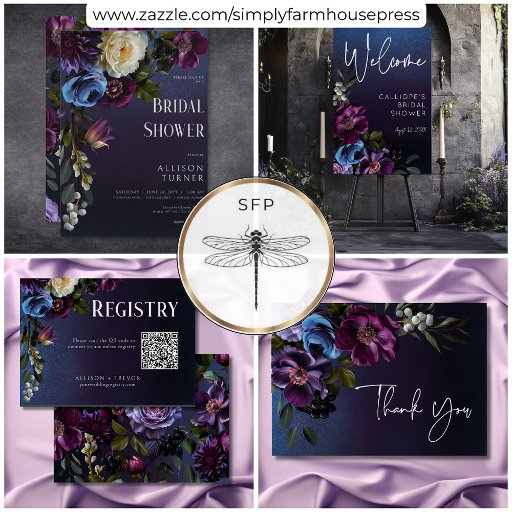 Dark Blue & Purple Floral Moody Bridal Brunch Paper Plate