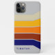 Contemporary dark blue, red, orange, and sunny yellow coloured circle stripes pattern on a grey background cell phone case. With room to customise with a name, monogram, or initials of your choice. Beautiful, modern, and cool cover for the trend-savvy and art-loving hip trendsetter, artsy motif lover who wants to protect their phone from dust and dirt, wear and tear. This design is available for iPhone 6, 7, and 8 Plus, 10 or X, XR, XS, 11, 12, 13 Mini, 14, 15 Plus, and Pro Max cellphone cases. Show off your style, look fashionable trendy, and feel stylish with a unique design on a mobile device accessory of your choice.