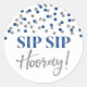 Dark Blue Silver Confetti Sip Sip Hooray Classic Round Sticker