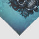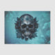 Dark blue skull with roses. Impressive, stylised skull in a deep, rich dark blue that is reminiscent of the night. The contours of the skull are clearly defined and give it a mysterious aura. The eye sockets are deep black and radiate a mysterious intensity. This design conveys a powerful message of life and death, beauty and transience