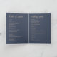 Introducing the Dark Blue Soft Wedding Program – an elegant and sophisticated choice for your special day. Crafted with premium quality materials, this wedding program features a deep, rich blue hue that exudes timeless charm and modern grace. The soft-touch finish adds a luxurious feel, making it perfect for any formal wedding. Personalise it with your own details to create a memorable keepsake for your guests. Whether you're having a classic or contemporary celebration, this program will complement your theme beautifully.