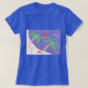This dark blue T-shirt is designed with a paper art depiction of an island scene with palm trees, umbrellas, a blue ocean, and a red sailboat.