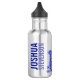 Fun bright blue steam locomotive train drinks bottle perfect for a young train enthusiast, model train builder or trainspotter. Customise with your son's full name and first name on train. Currently reads "Joshua Stevenson". Illustrated and designed exclusively by Sarah Trett.