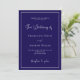 A classic, modern dark blue background. Decorated with a white frame. Personalise and add your names and the details.