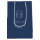 Dark blue white leaf oval wreath monogram wedding medium gift bag