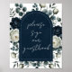 Dark Blue & White Modern Floral Guestbook Sign