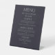 Dark blue with light font menu pedestal sign
