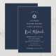 This simple and elegant design features white calligraphy and modern matching text on a dark, navy blue background. A matching Star of David makes this perfect for your religious Bat Mitzvah.