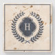 Dark Blue Wreath Crest, Frame & Monogram Stone Coaster