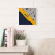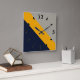 Dark Blue, Yellow, Grey striped Textured Square Wall Clock