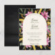 Make a dramatic and romantic statement with this dark blush pink lily arched wedding invitation. Featuring vibrant watercolor lilies, golden yellow blooms, and lush greenery set against a rich black background, this design highlights a modern curved arch layout for a sophisticated and elevated look.