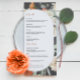 Beautiful menu cards to compliment your table settings at your wedding or next dinner party. Pure magic abounds with this palette grounded in floral - and boho-inspired hues. Soft, antique orange takes the lead while sunny hues come together in a way that is down to earth and easy to incorporate for a garden escape or modern city setting alike. Moody black and ivy green top it off, painting an enchanting palette perfect for any bohemian event. If moody meets airy is what you’re looking for, then this wedding colour scheme will surely have your heart!