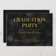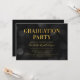 Chic graduation party invitation featuring the words "Graduation Party" in faux gold foil against a dark bokeh lights pattern background. Invitation has a dark background back side.