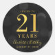 Dark Bokeh Gold Cheers to 21 Years Birthday Classic Round Sticker