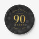 Dark Bokeh Gold Cheers to 90 Years Birthday Paper Plate