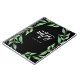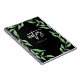 This elegant, dramatic notebook features watercolor green botanical leaves on a black background, with trendy white typography.
