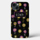 Personalised floral iPhone case with a girly dark floral design created from digitally drawn abstract flowers with round shapes in yellow and pink. This decorative floral design will just get you in the mood for spring season.