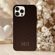Dark Brown Faux Leather and Gold Monogram Initials Case-Mate iPhone Case