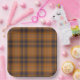 Copper brown, orange and dark blue Scottish tartan style table paper plate set for your Christmas celebration and other events. Vintage and modern at a time!