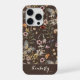 Dark Brown Watercolor Wildflowers Pattern Name iPhone Case